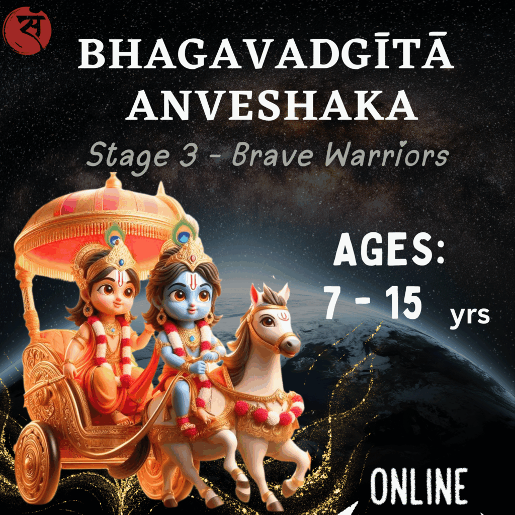 Dive into the world of Sanskrit, chanting verses from the Bhagavad Gita, exploring life lessons and values from the Mahabharata, learning grammar concepts, enhancing language skills, and experiencing stories of the modern-day Arjuna guided by the divine Sārathi Krishna – all while having fun! This unique Sanskrit Activity Centre (Stage 3) is designed for children ages 7 to 15 years, online batches every weekend. Perfect for building courage, confidence, and a deep connection with Indian heritage.